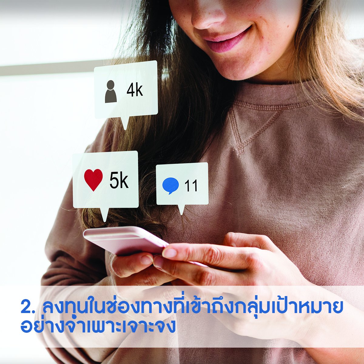 •2. เพิ่มการลงทุนในช่องทางที่เข้าถึงกลุ่มเป้าหมายอย่างจำเพาะเจาะจง ปัจจุบันผู้บริโภคเสพคอนเทนต์ในหลายแพลตฟอร์มากยิ่งขึ้น ดังนั้นการซื้อสื่อทีละแพลตฟอร์มจึงไม่ตอบสนองการเข้าถึงผู้บริโภคและสร้างความน่าสนใจอย่างทันท่วงที